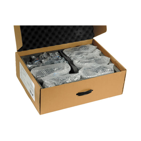 Sistema de intercomunicação com fio de 6 estações com headsets estéreo. Incluso PC-100 – console de energia, AC-20 – fonte de alimentação, 6 x H-200 – headsets e 6 x BP-200 – packs de cinto e B3-100 – branch box.